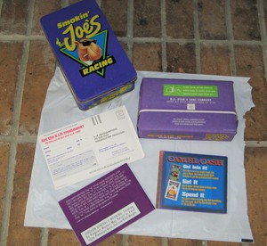 Smokin' joe's racing tin match box with joe camel matches & lighters.
